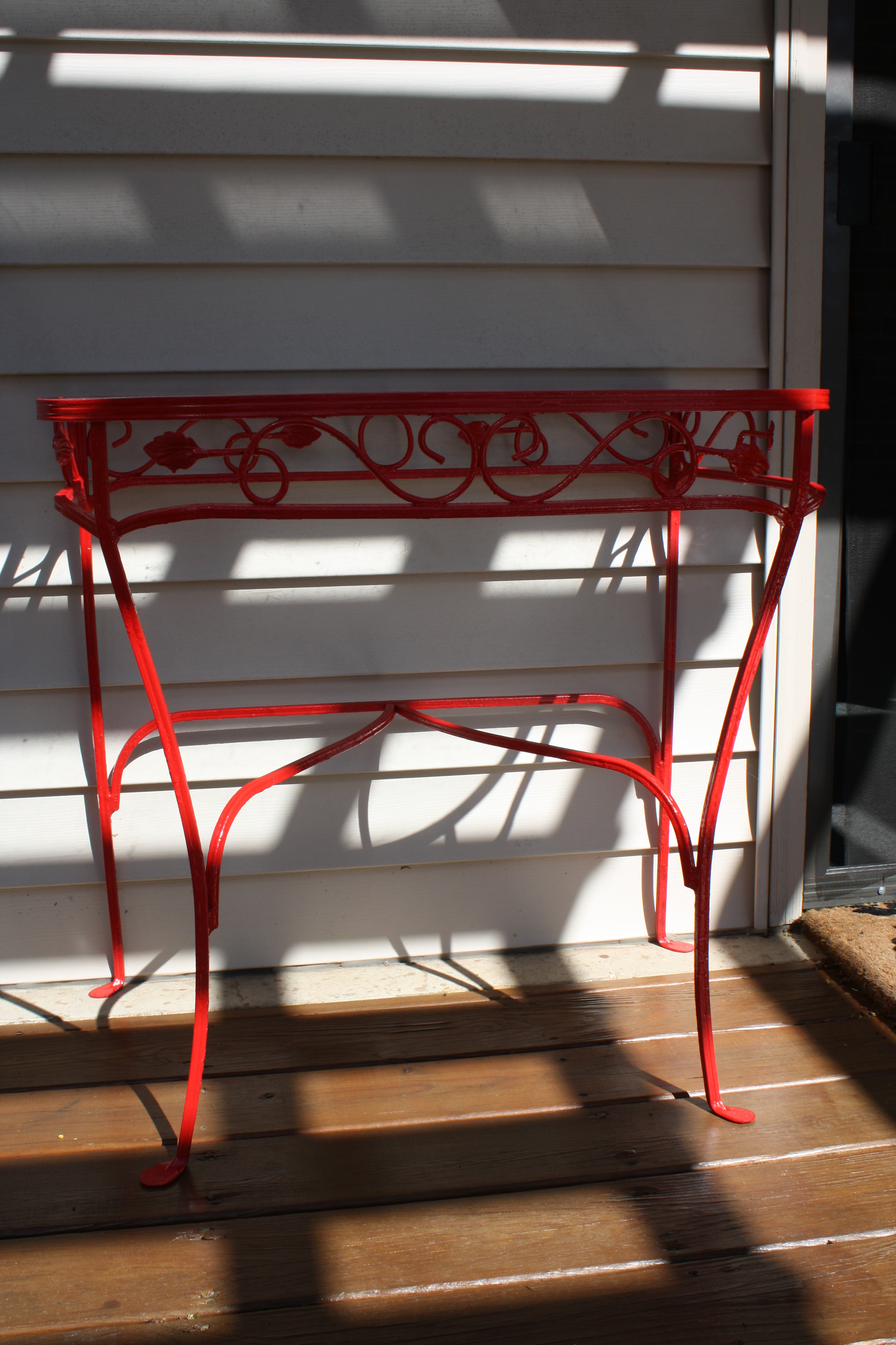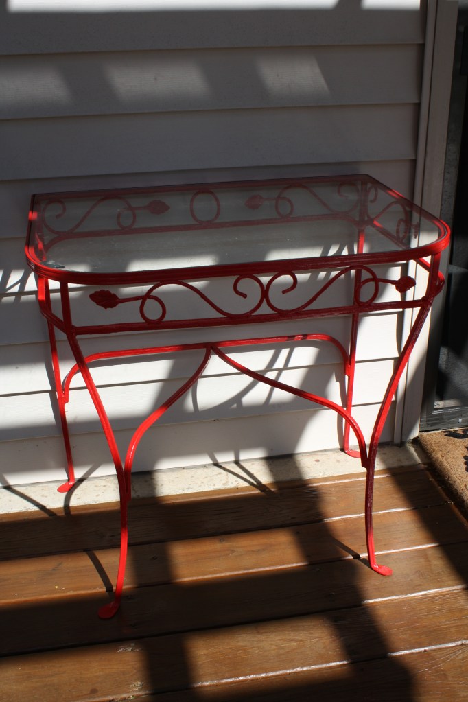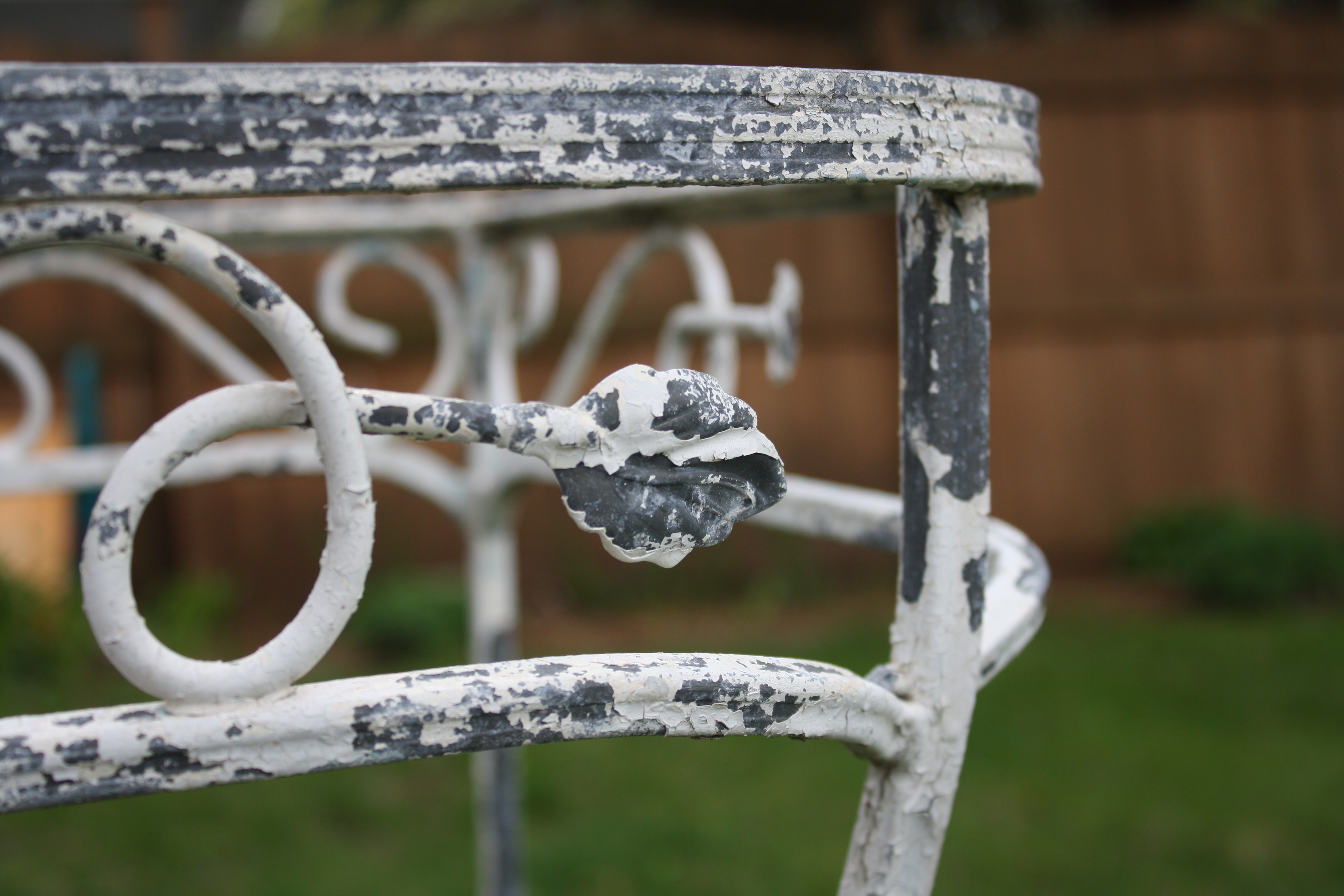 For some time now, I have been wanting to find antique pieces to refinish and then use to redecorate our outdoor space. We spend almost every waking moment out there come summer time, and I felt like the area needed a bit of sprucing up. My husband’s grandmother, gave me a beautiful iron garden table that I stripped and then repainted.