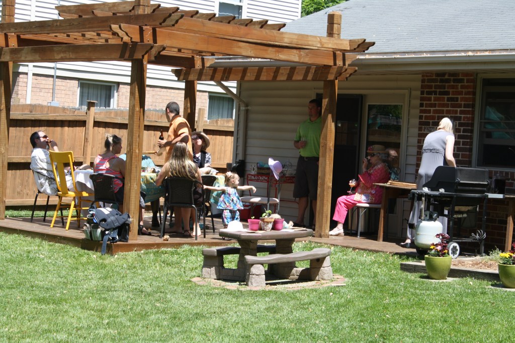 When the noon hour arrived, so did our entire family for our first annual Mother’s Day Garden Party. The kids played the day away in the playhouse, entertained us with their musical instruments, and then rounded out the day in the kiddie pool. The adults enjoyed rhubarb bellinis (yet another favorite Jamie Oliver recipe of mine taken from this cookbook), some tasty food, and of course, great company.