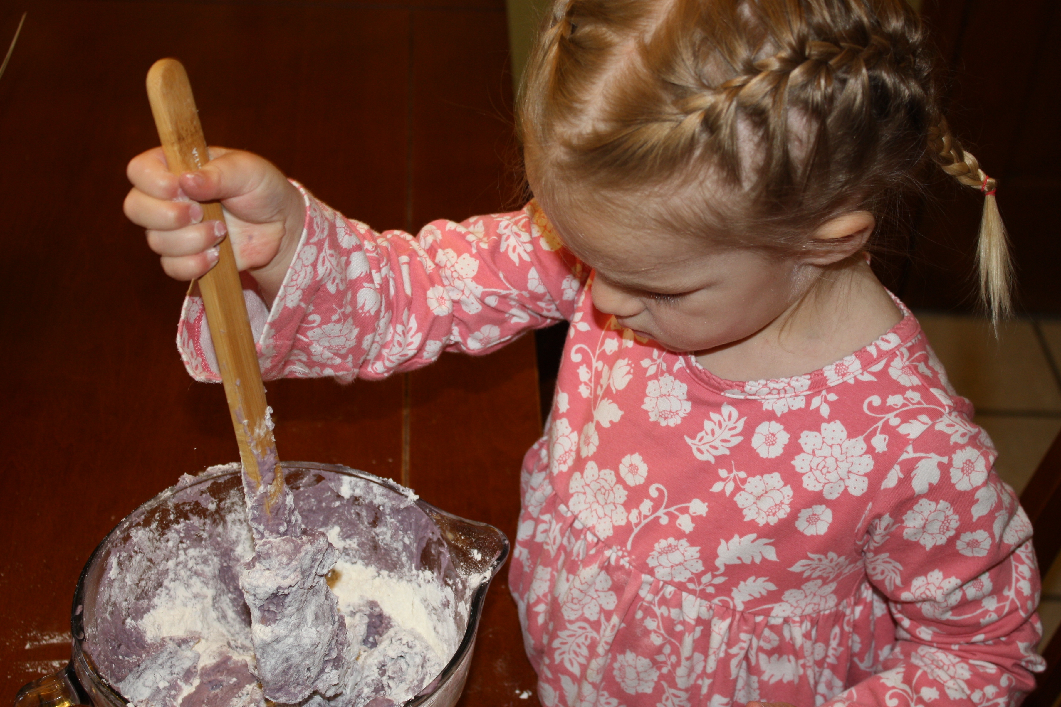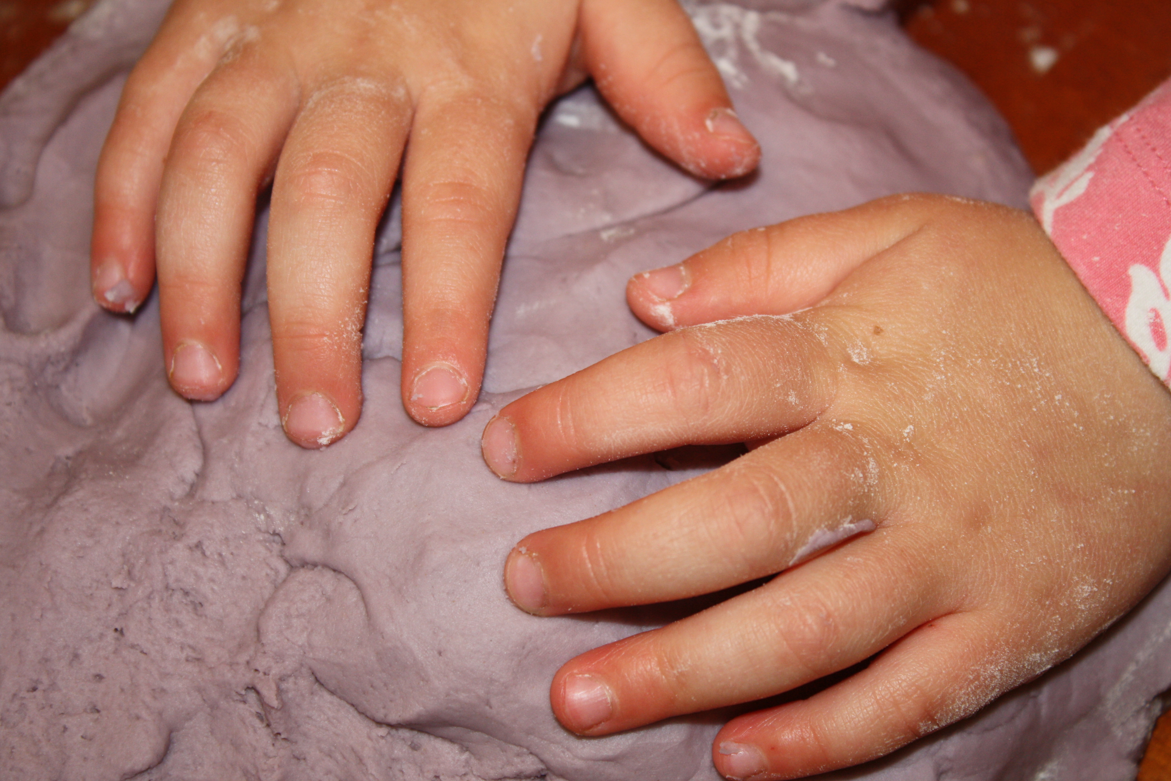 Today my youngest and I made our all-time favorite play dough. I acquired the recipe last year from my daughter’s pre-school teacher and it has made its way onto our “must make often” list in our household. The best part of this play dough is that it is scented! You add Kool-Aid mix packets to the dough recipe to make it colored and scented at the same time…so fun! I think I’ve passed this recipe on to all of my close friends who have children, so I am now thrilled to pass it on to all of you. Enjoy!