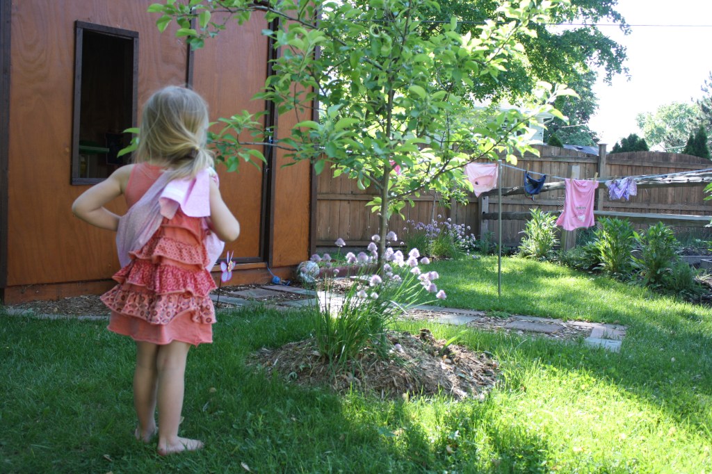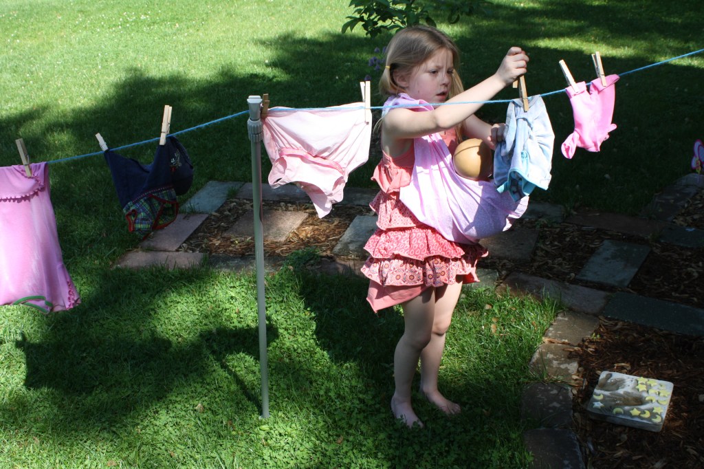 1. Love the baby in the snuggie while she is hanging laundry!! Oh, do I remember all the times I did things holding a baby………good times to remember!