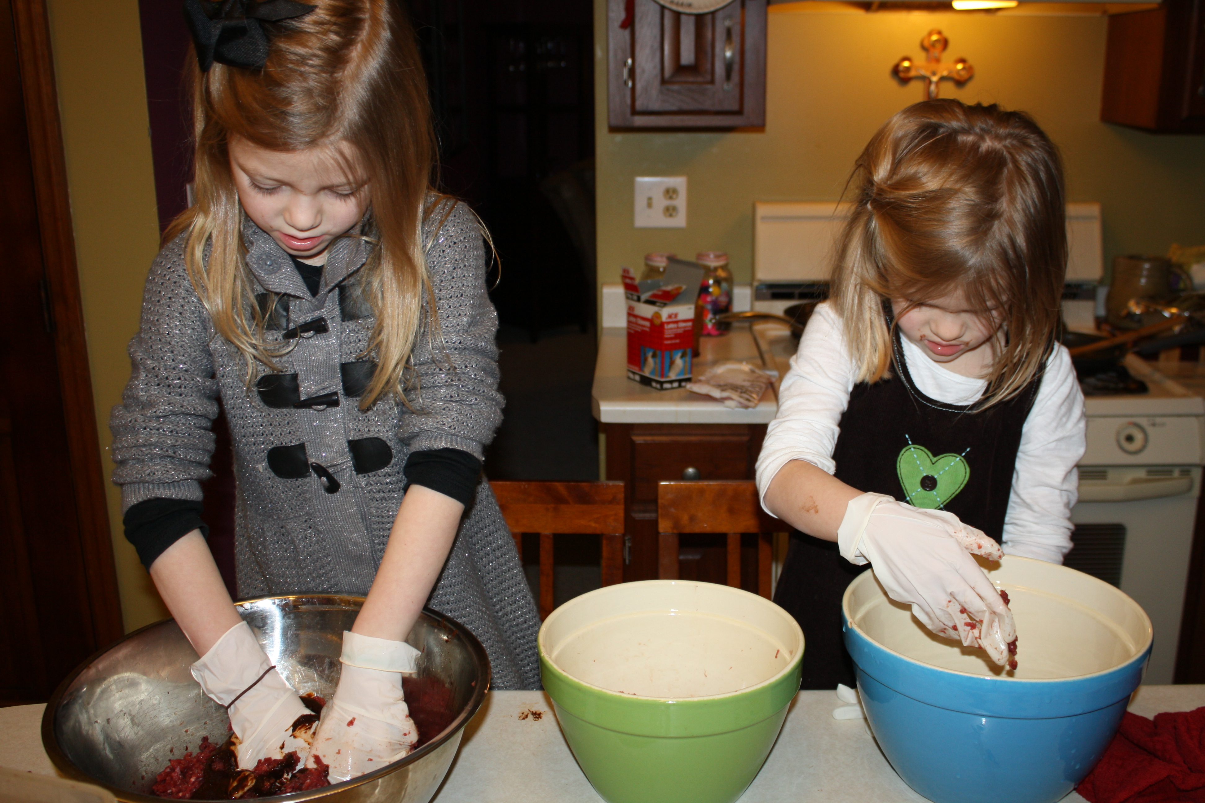 The whole family got involved yesterday afternoon, as the temperature around here plummeted into the single digits and we were forced indoors. We used our absolutely favorite chorizo recipe from Rick Bayless’ Mexico One Plate at a Time, substituting the pork shoulder the recipe calls for, with venison.