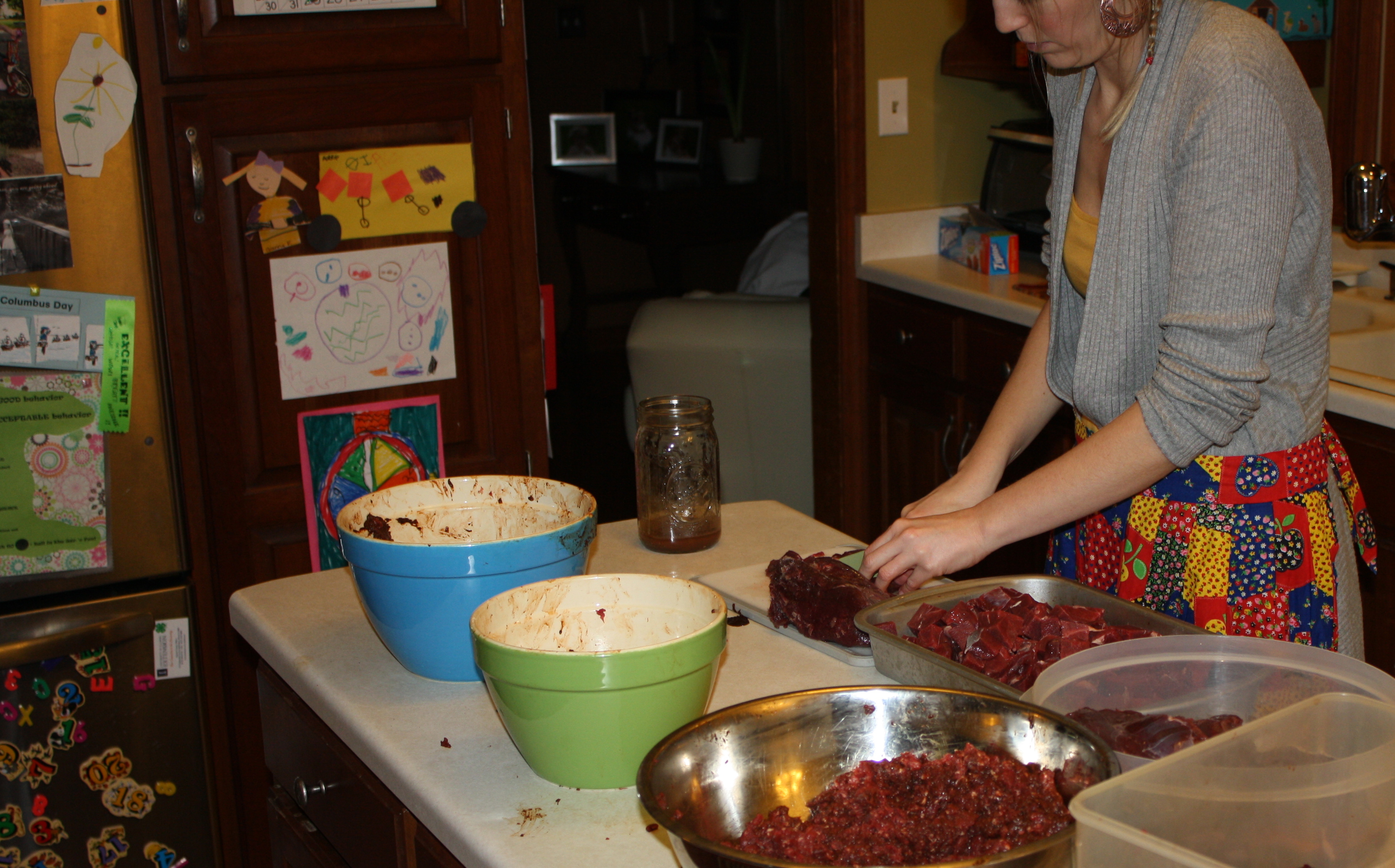 We purchased this meat grinder yesterday, to assist with the process, and once we got going and figured out how the machine actually worked, we were well on our way to a delicious dinner.