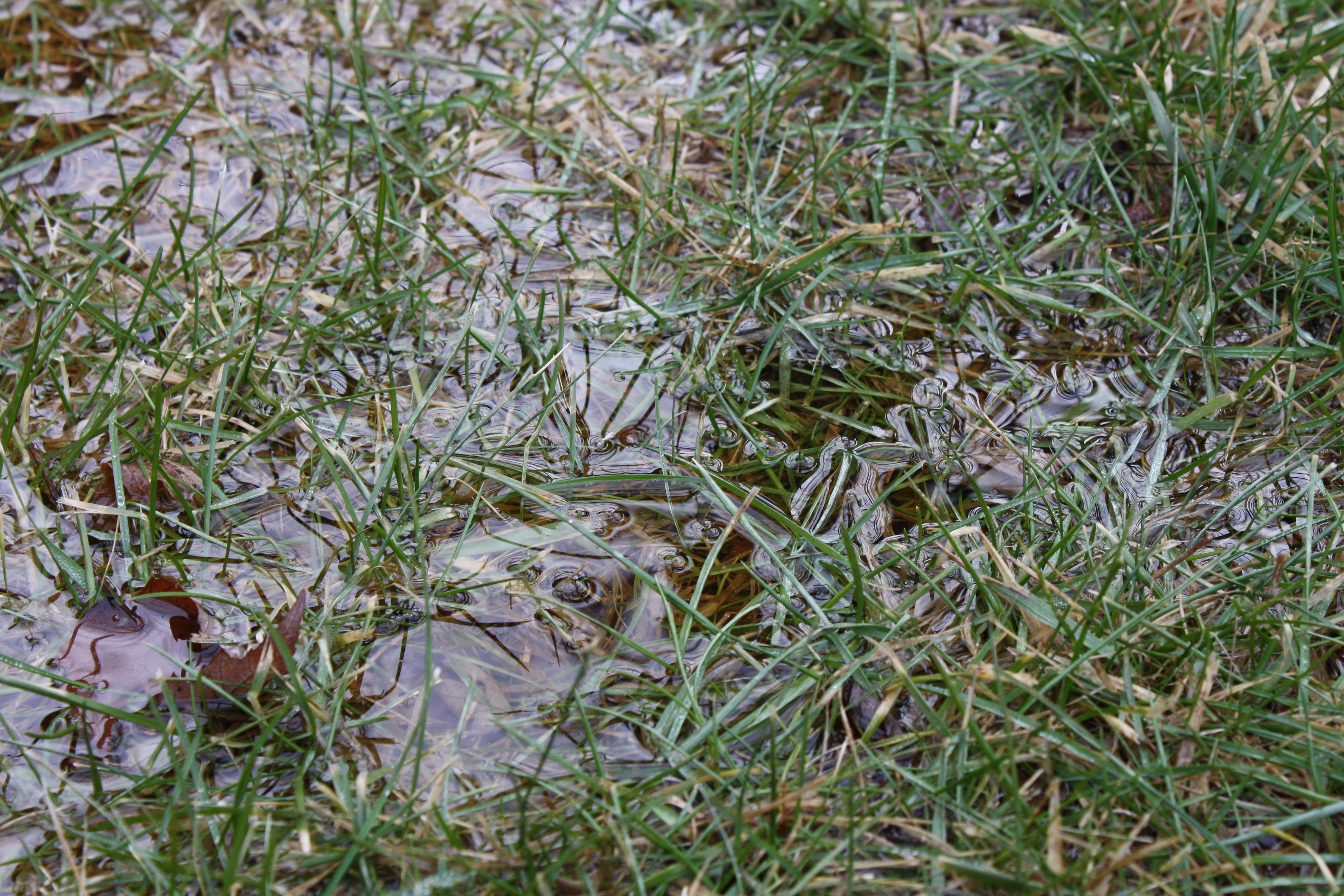 ~looking out my kitchen window at our puddle-ladden yard from all of our rain last night.