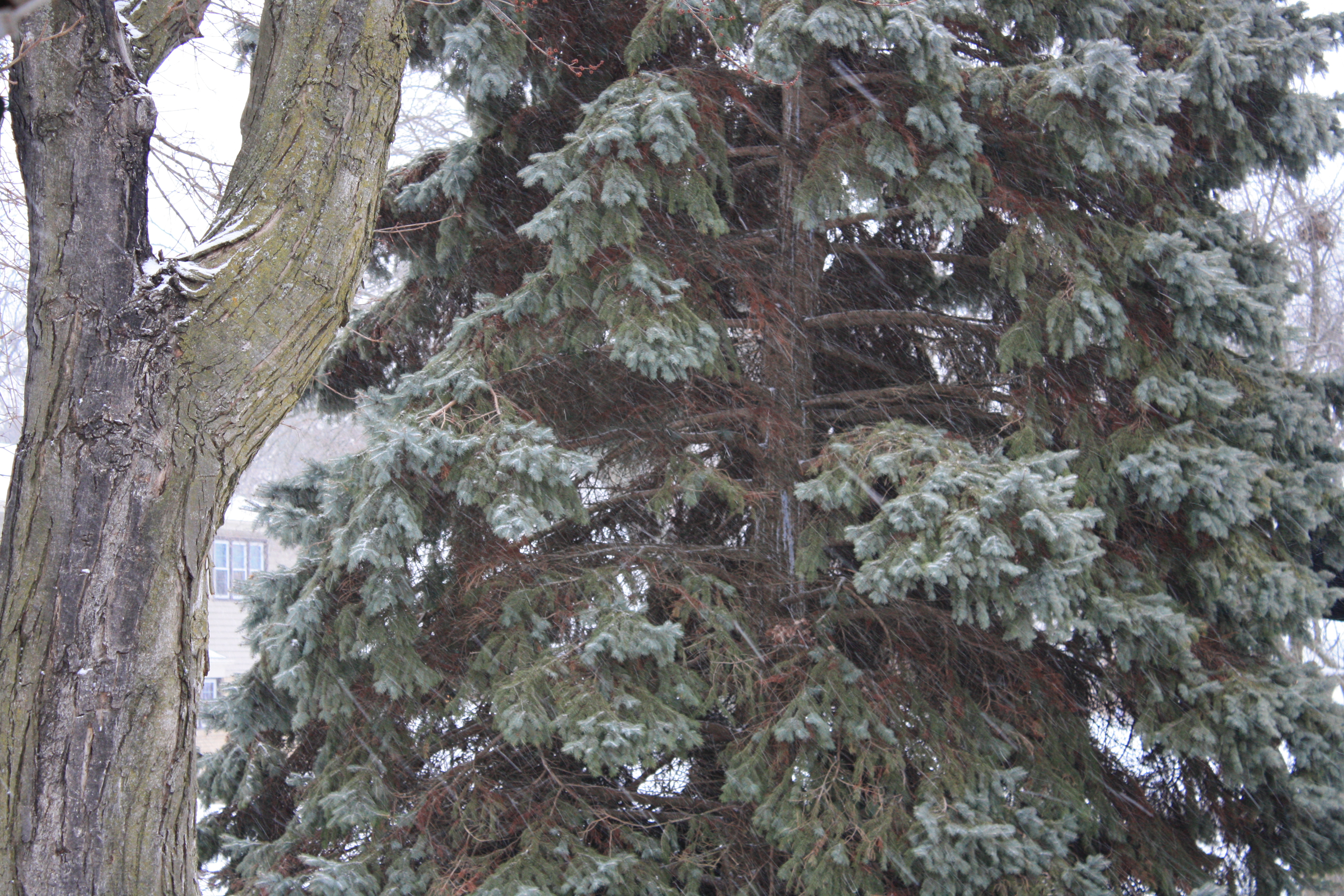 It doesn’t show up wonderfully in this photo, but there is quite a bit of snow falling in the picture.  This winter landscape outside my front door led me to think about the strangely warm spring we had last year, and the stark contrast to this morning’s weather.