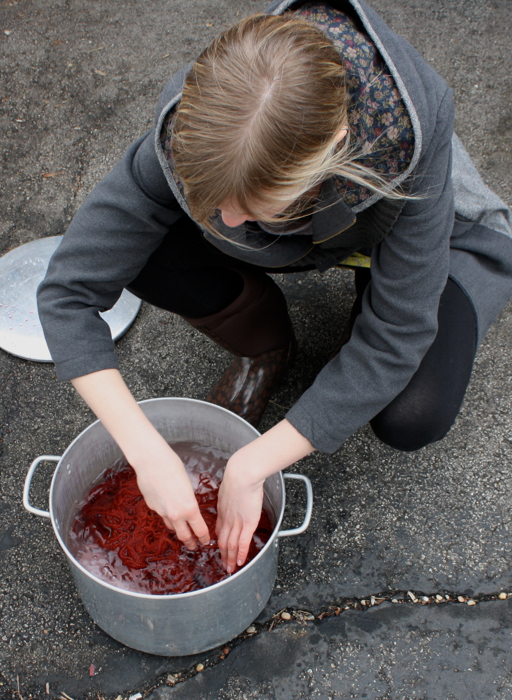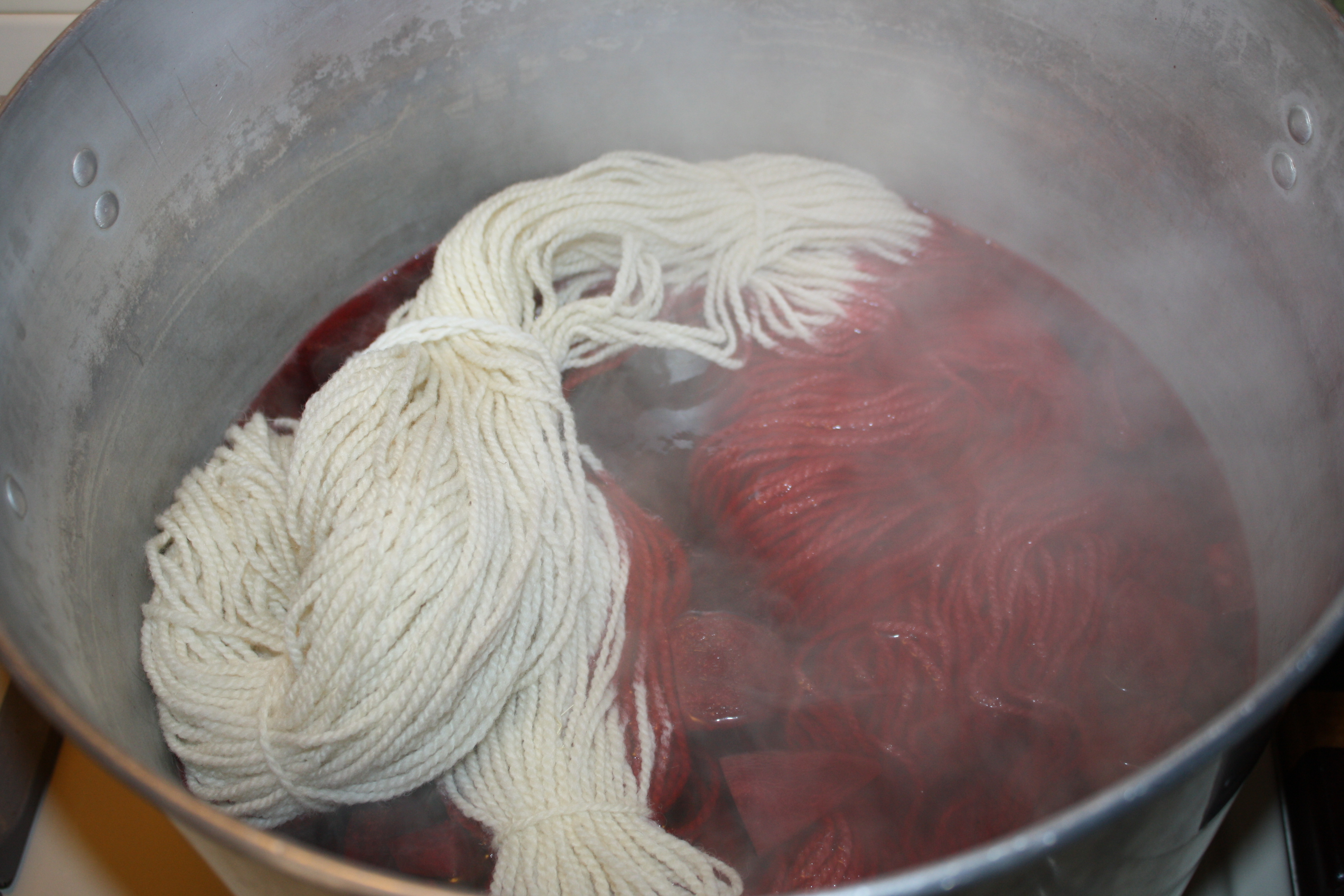 Then remove the pot from the heat, cover and let it rest overnight.  (Yes, just leave those beets in there…It’s fine.)  Rinse the yarn 2-3 times in luke warm water.