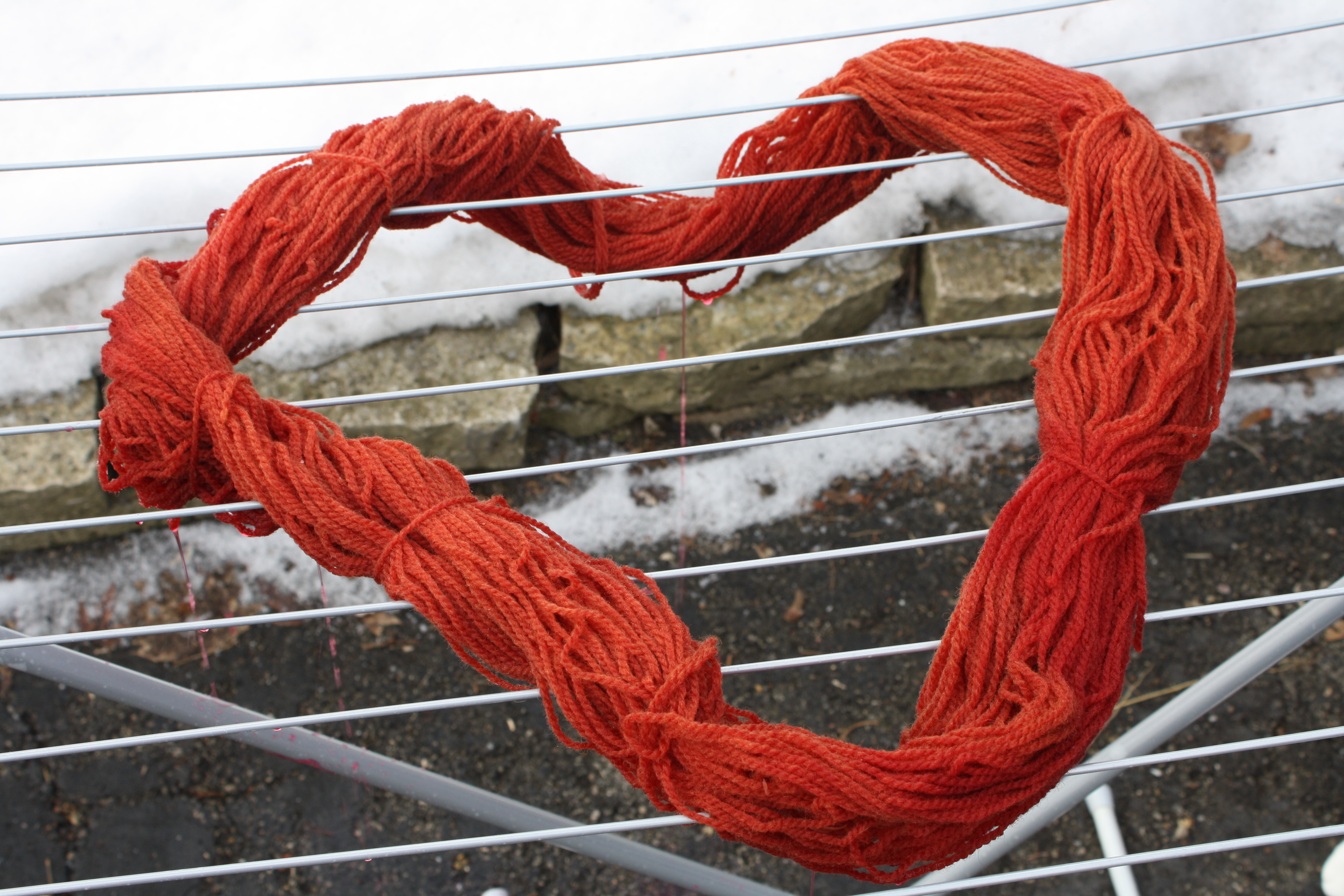 IMG_1030We had so much fun dyeing Easter eggs over the weekend, I decided to hop on the natural dye agent train and go for a real ride.  I had one skein of wool left after I finished  making the woolens in this post, and a few left over beets from dyeing eggs.  I decided I would try to dye the wool yarn.  Here’s what I did…