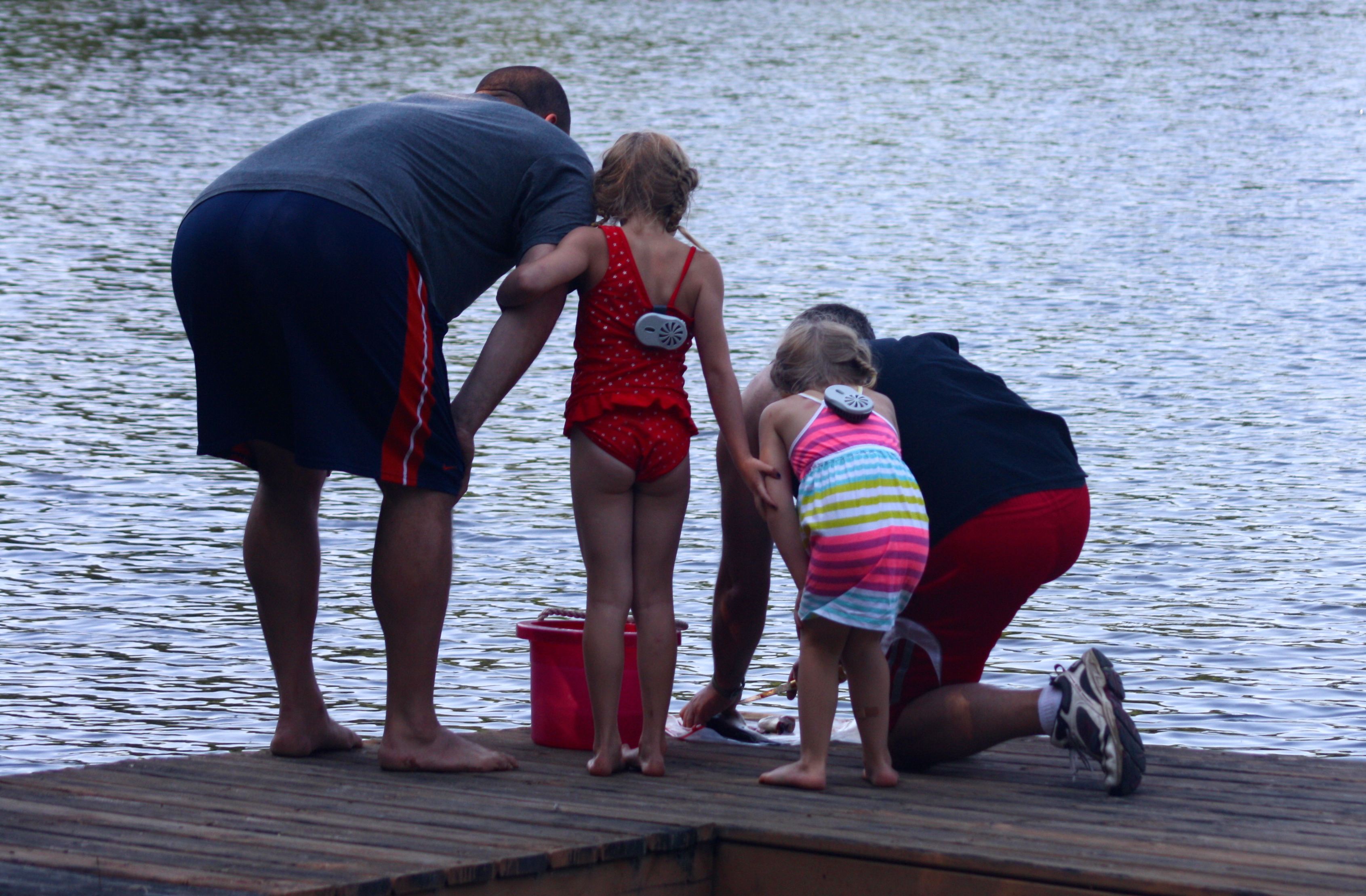 Ever since having children, I find myself thinking about what little images will be held in their minds for the duration of their lives.  After spending time in the Northwoods of Wisconsin last week,  I can unequivocally say these Northwoods-memories will stay with my girls forever.  For what could be better than a breakfast cooked on the beach? Or jumping off the dock at least a hundred times, never tiring because it fills you with the most thrilling feeling each and every time your body pauses for that brief moment in the air before plunging into the cool waters below? Or crunching your toes in the damp sand as the refreshing water waves over them?  Or having your parents feed you bits of food in the lake because you refuse to get out of that amazingly fun water for even a second?  Or dancing on a stage with your cousins while a Tom Petty song plays, without a care in the world that dozens of grown-ups are watching you, wishing they could embrace the wild abandon running through every fiber of your being?  These are the moments I am sure my girls will carry with them, for this is what summer memories are made of.