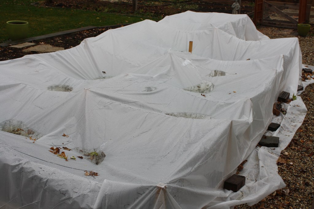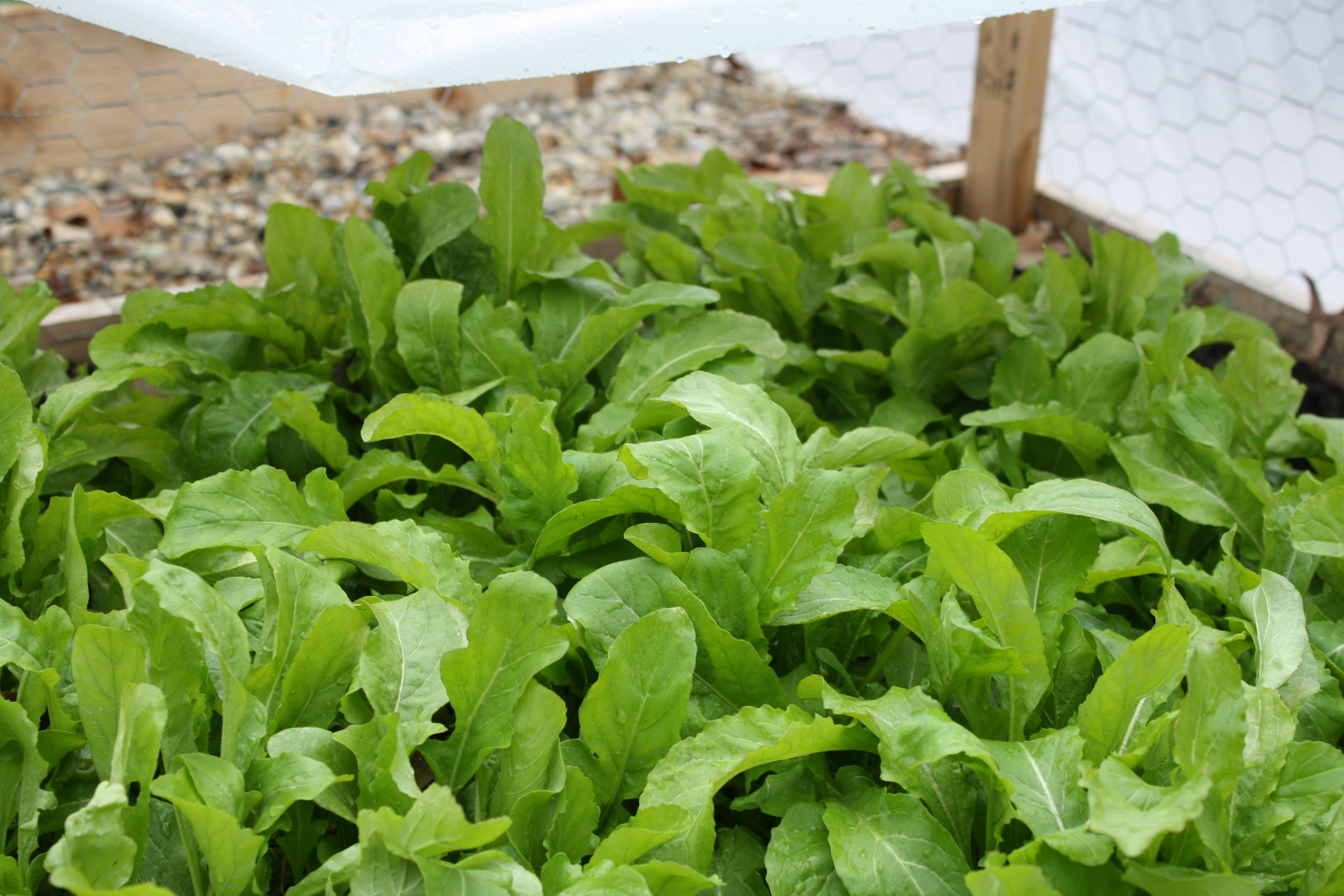 Although it is quite nasty outside, when we peered under our temporary greenhouse we found it teeming with life and vibrancy. We do plan to eventually put in an actual hoop house, but for the time being our little makeshift project seems to be doing just fine and is supplying our family with fresh verdigris for our dinner this evening. I do believe I see a fresh arugula salad with dandelion vinaigrette dressing in our very near future 🙂