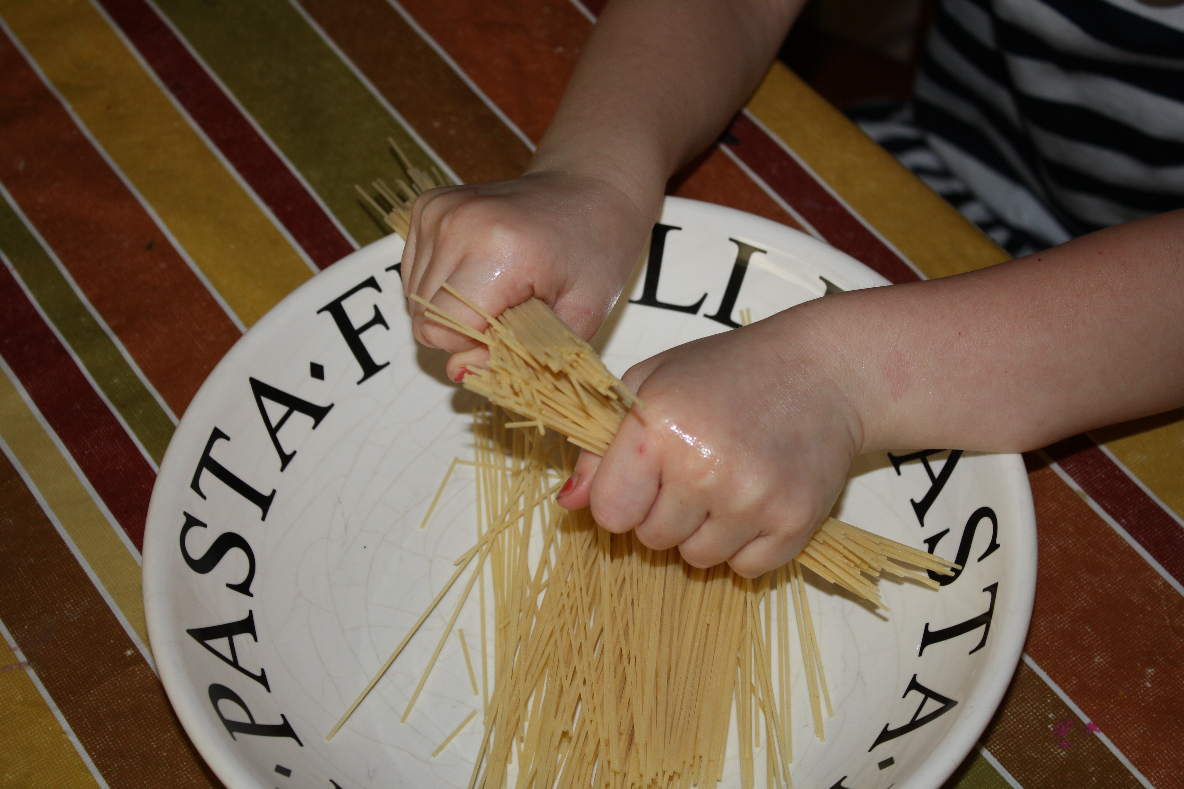 So to curb their enthusiasm, I told each girl she could prepare her own dish to serve at dinner.  And I must say, I was thoroughly shocked at the result.  This five-year-old and three-year-old created two different dishes that not only tasted good, but in the words of Gordon Ramsay were “visually stunning.”  It is truly fascinating to me what the minds of small children are capable of when left to run free without boundaries or restrictions.