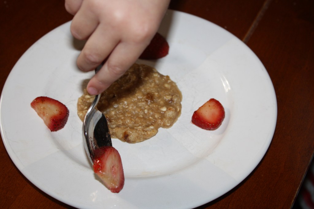 In the past, she had been content to mix random ingredients together, put it in our counter top convection oven (with Mommy’s help of course), and eat her creations.  Now with that said, she has done quite a bit of experimenting with various flavors and has come up with some delicious combinations, but the creations were random none the less.  But yesterday she said to me, “Mommy, I want to make my own thing, and I want it to be an actual recipe.”
