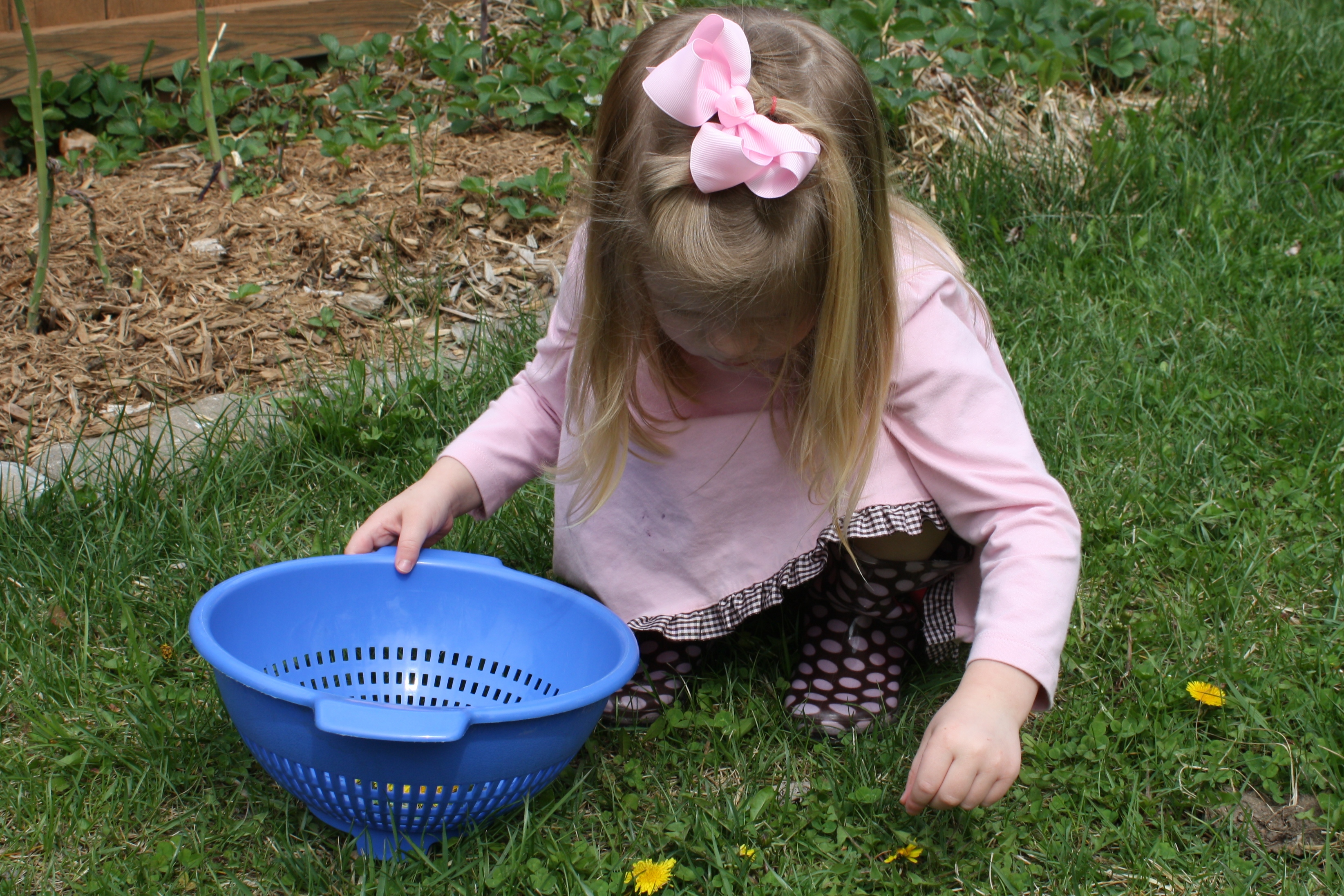 Last week the girls and I needed to clear our strawberry and asparagus bed of weeds, and there were lots of dandelions. So we picked and picked, trying our best to keep that lovely taproot intact. Then we rinsed those little gals a lot. (I think we ended up doing about 10-12 rinses to get all of the dirt off.) We then chopped up the roots, stems, crowns and some leaves and placed them in 1/2 gallon mason jars. Next we boiled apple cider vinegar and poured the boiling vinegar over the dandelions inside the mason jars. We placed the capped jars in a cabinet where they will stay for 3 weeks. After that time, we will strain the vinegar through a fine mesh strainer and refrigerate the vinegar for use over the next several months. This vinegar is great in salad dressings, but we also take shots of it when we feel a bit under the weather, or when we feel we need a pick-me-up.