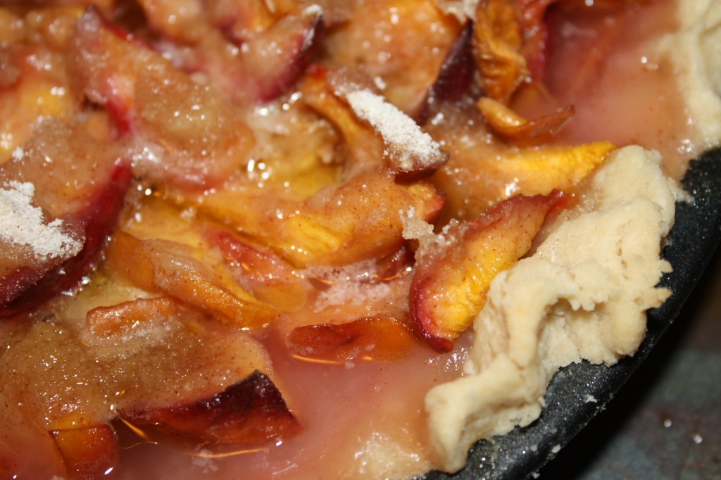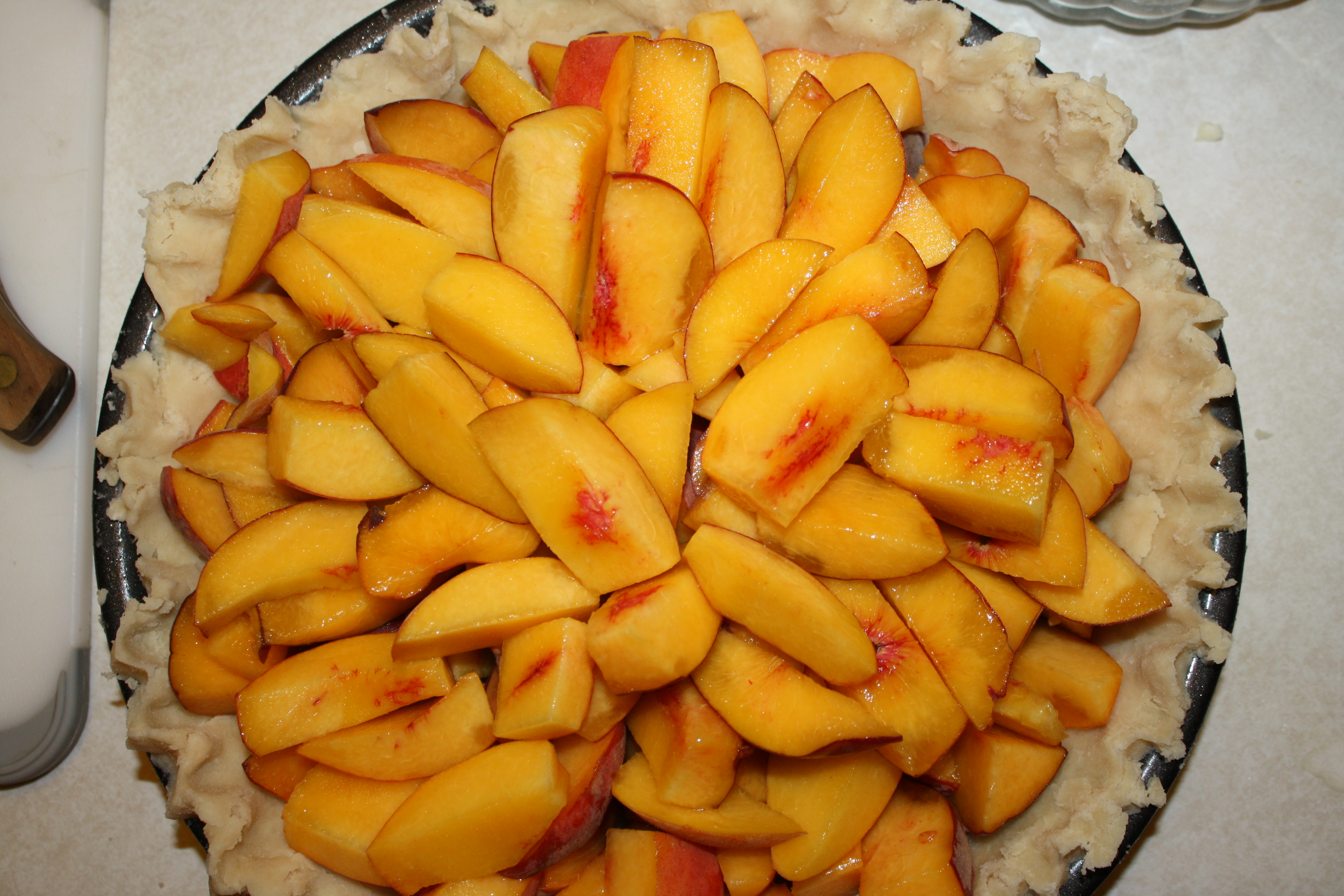 I make my own crust (recipe found here). Then I fill it with delicious sliced peaches.