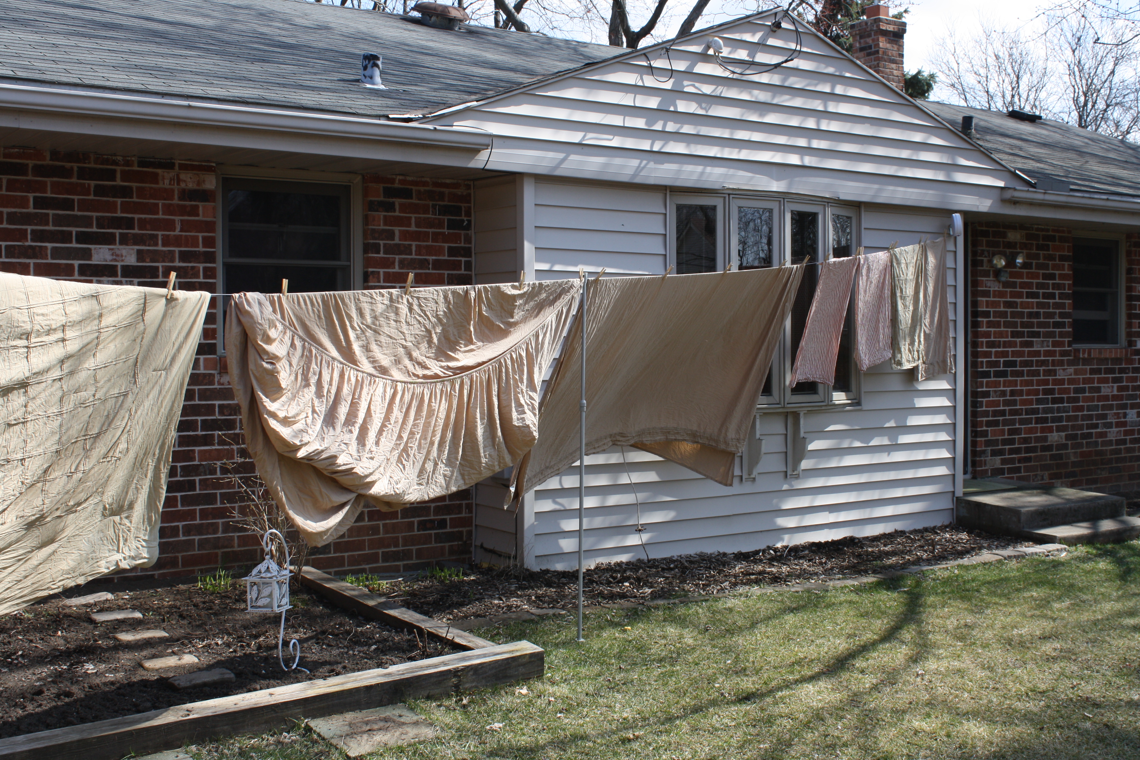 I like looking back upon the clothes that my family has worn, so thankful that we are able to have these garments to cloth us. I enjoy the sound of the laundry tumbling in the background as my girls’ voices rise and fall in their imaginary play. And I love hanging the clothes on the line to dry in the crisp, clean air. Right now that line is in my basement, but oh how I look forward to a bit of warmer weather so I can get those items out in the fresh air again. Yes, I think I have definitely come around when it comes to this very basic household task. And boy am I thankful for that.