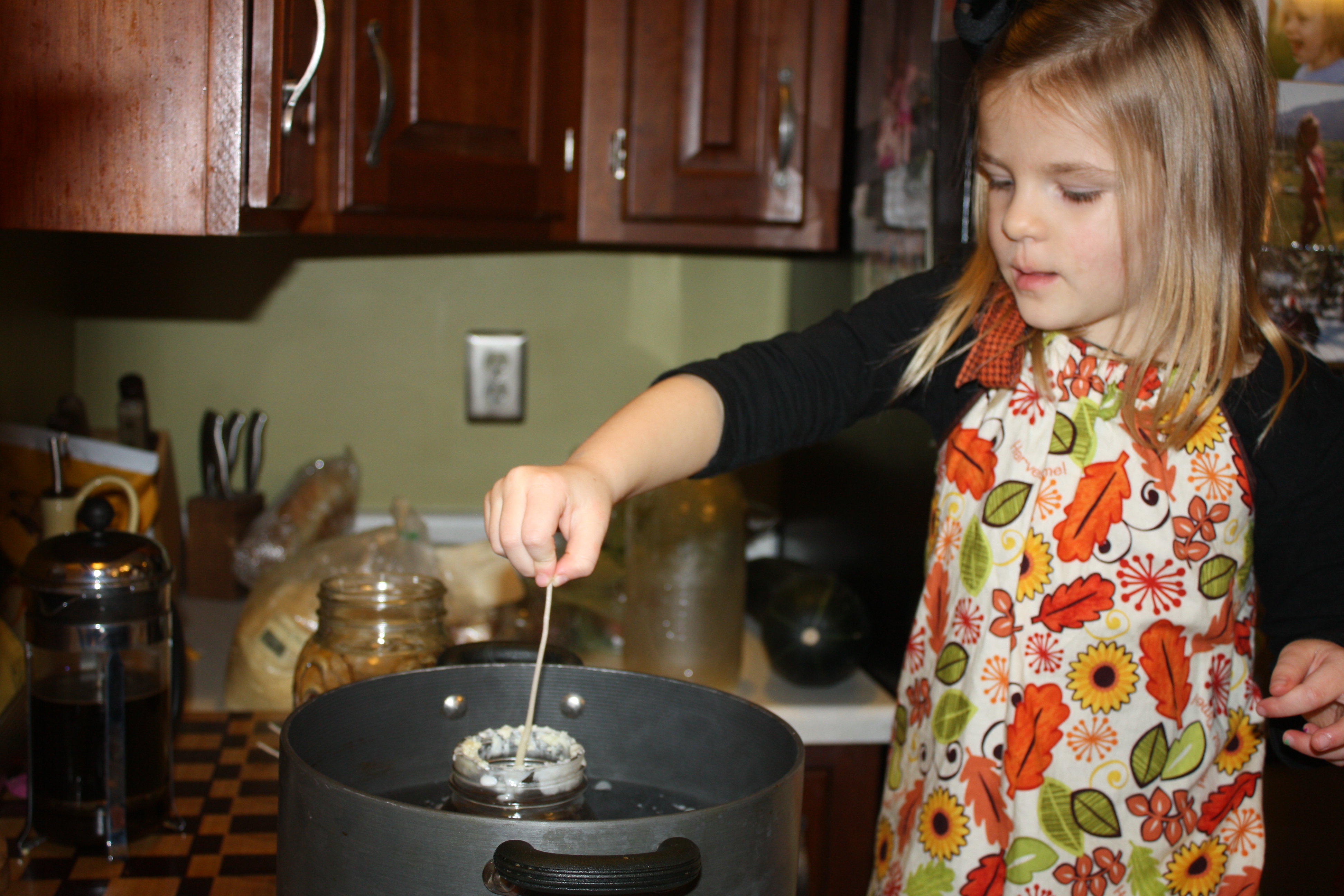 So, last Tuesday we ventured to the stove, and with a whole lot of adult supervision, we crafted four pillar candles that later lit our Thanksgiving table. We had such fun that I’m sure candle-making will become an annual crafting experience in our home.