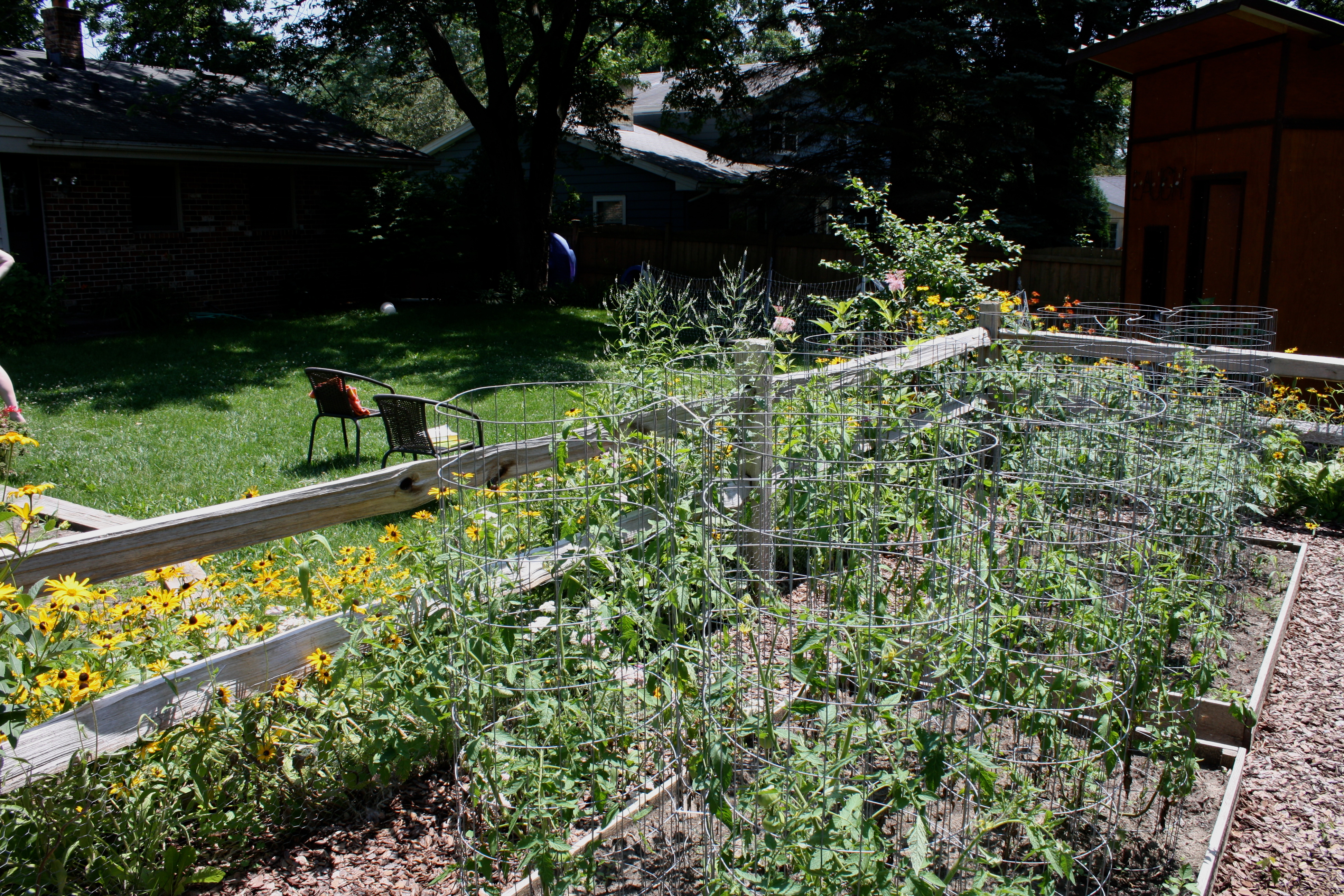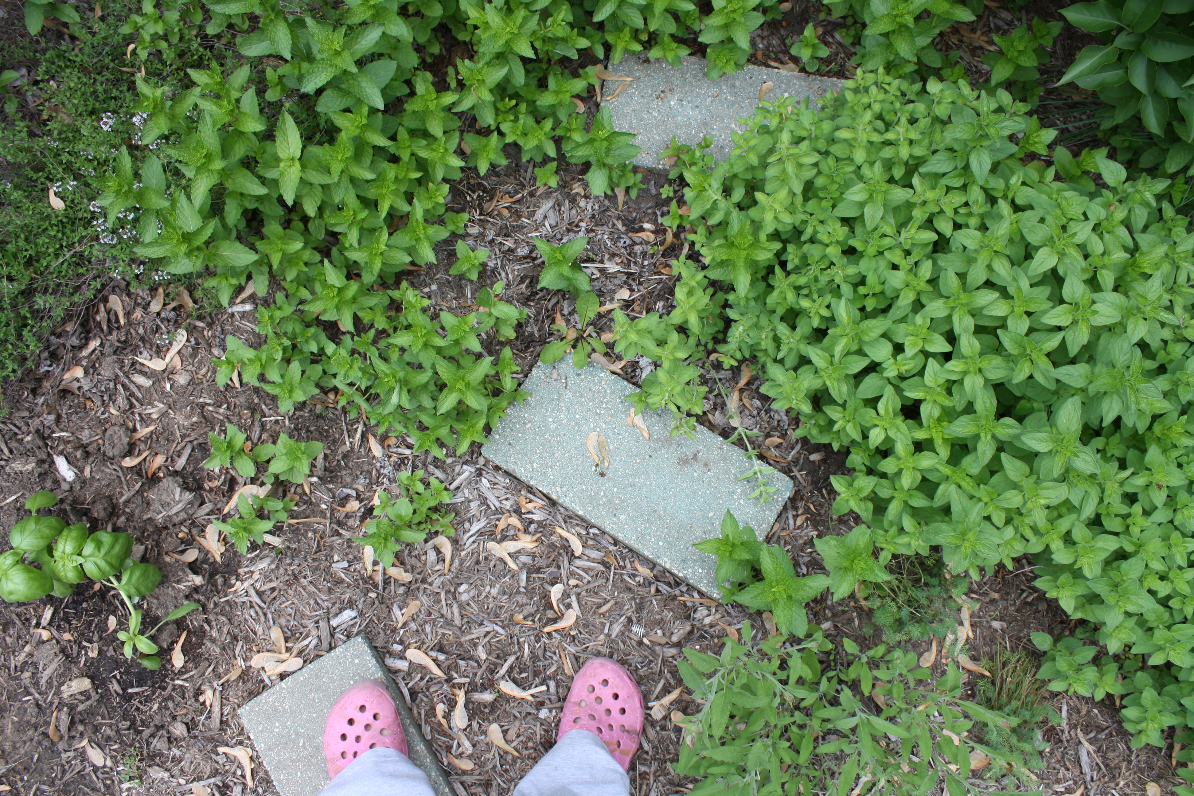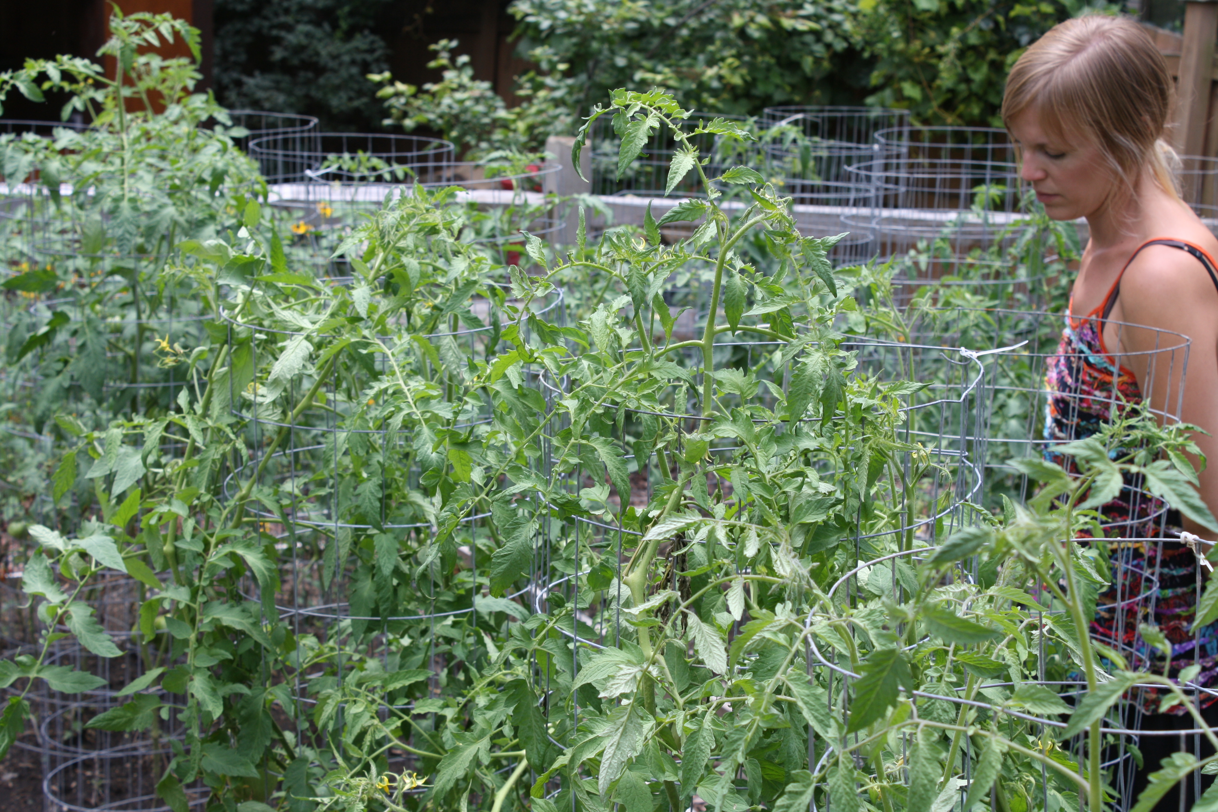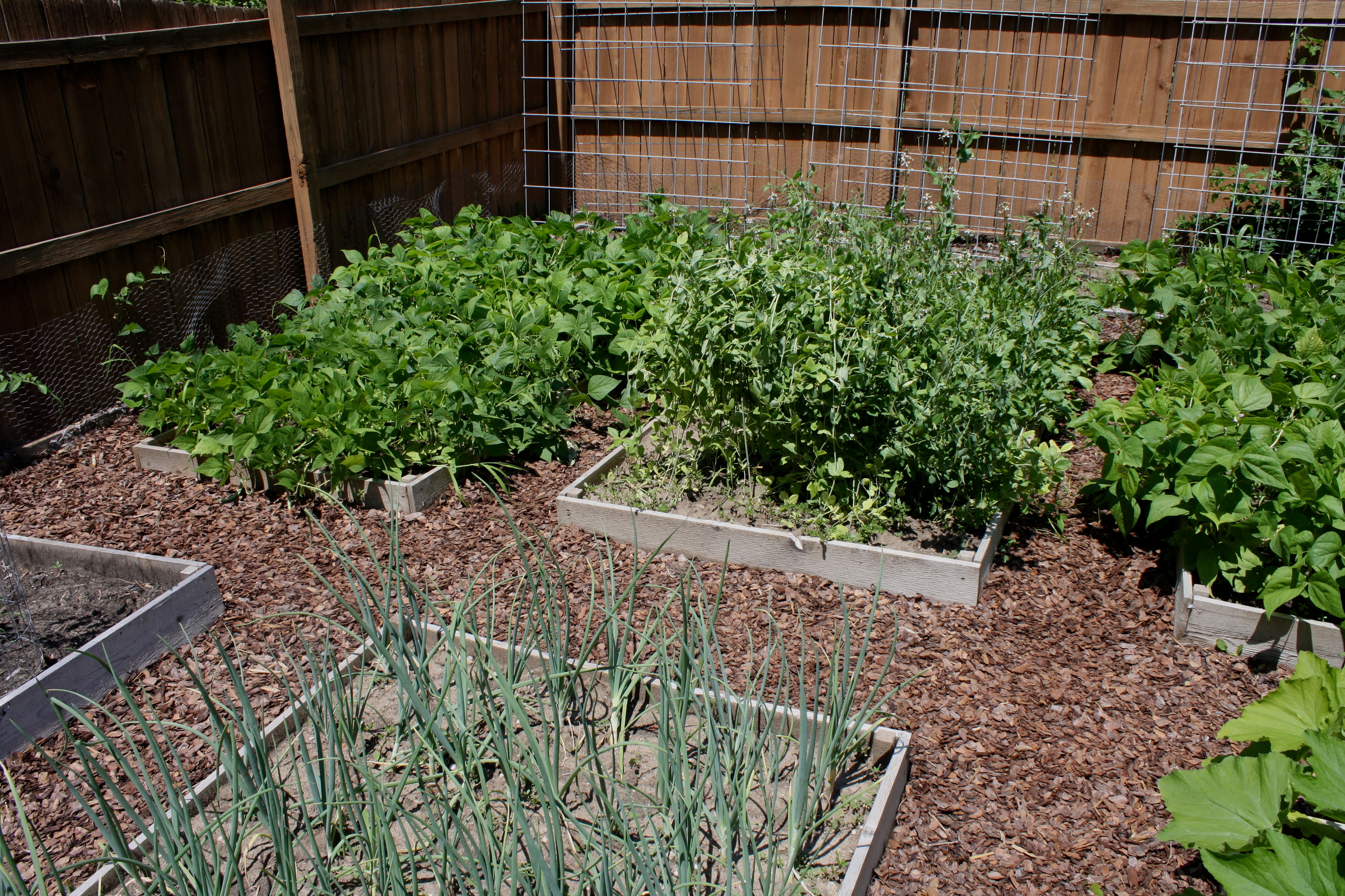 We had a random cement slab that was found in our yard when we bought our house and it has been milling about under a tree ever since. So, with much assistance from my strength-and-conditioning-coach hubby, we moved the cement slab near our backyard water spigot. I used the old legs from our outdoor table we had just scraped, and attached them to a countertop my dad had just removed from his basement during a remodel. I then placed a washtub next to the table, with a bucket beneath the drain. We plan to plug the washtub, dump in our muddy produce, and fill the tub with our nearby hose-water. Once all the veggies have been scrubbed clean and placed in a strainer on the table, we can drain the tub into the bucket and then use that greywater to water our plants with. And all of this will happen outside, and now only gloriously clean veg will make its way into my kitchen.