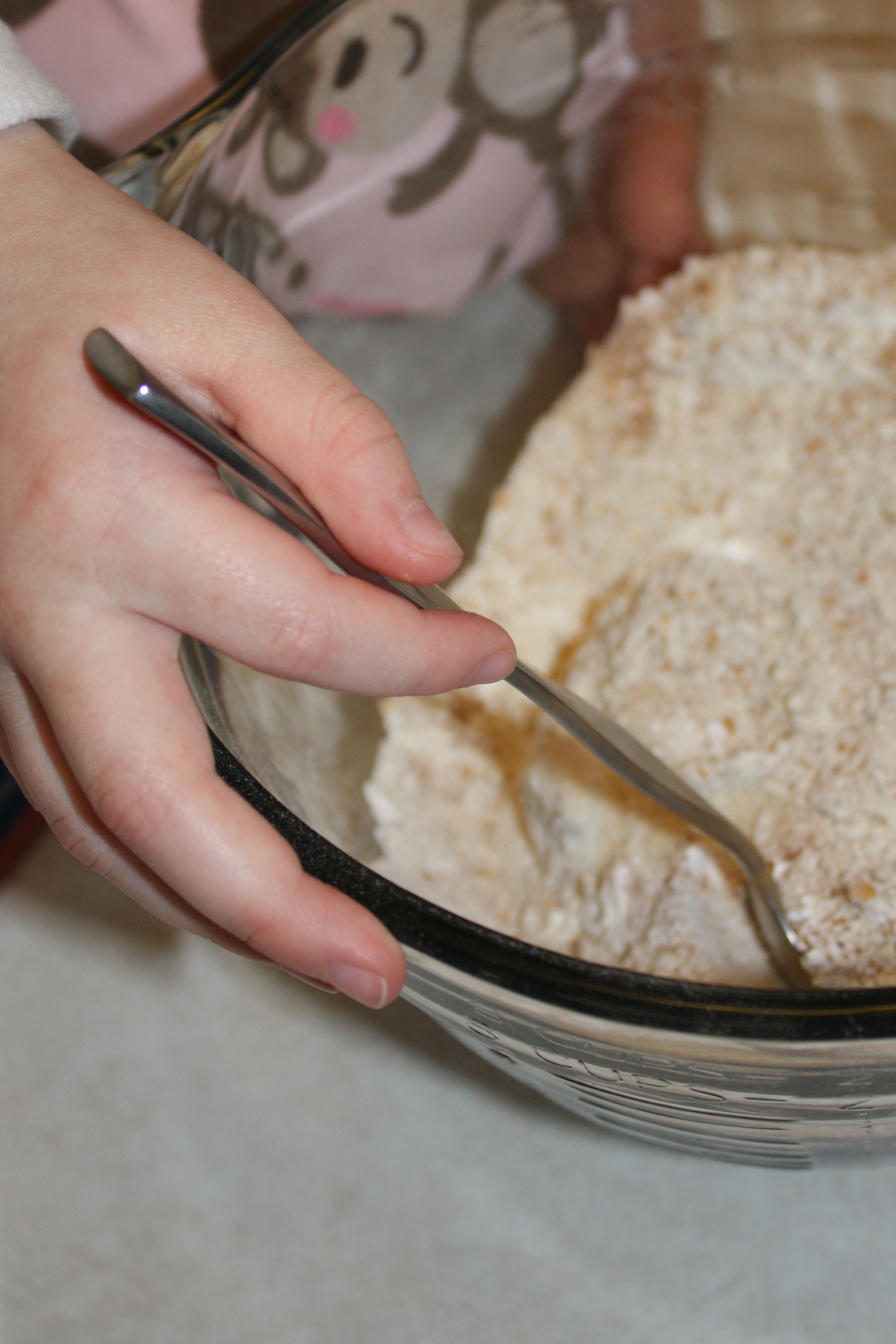 Next mix the wet ingredients into the dry. Fold in 1/2 cup chopped walnuts. Pour into a bread pan and bake in a 375 degree oven for 45 minutes to an hour. Enjoy!