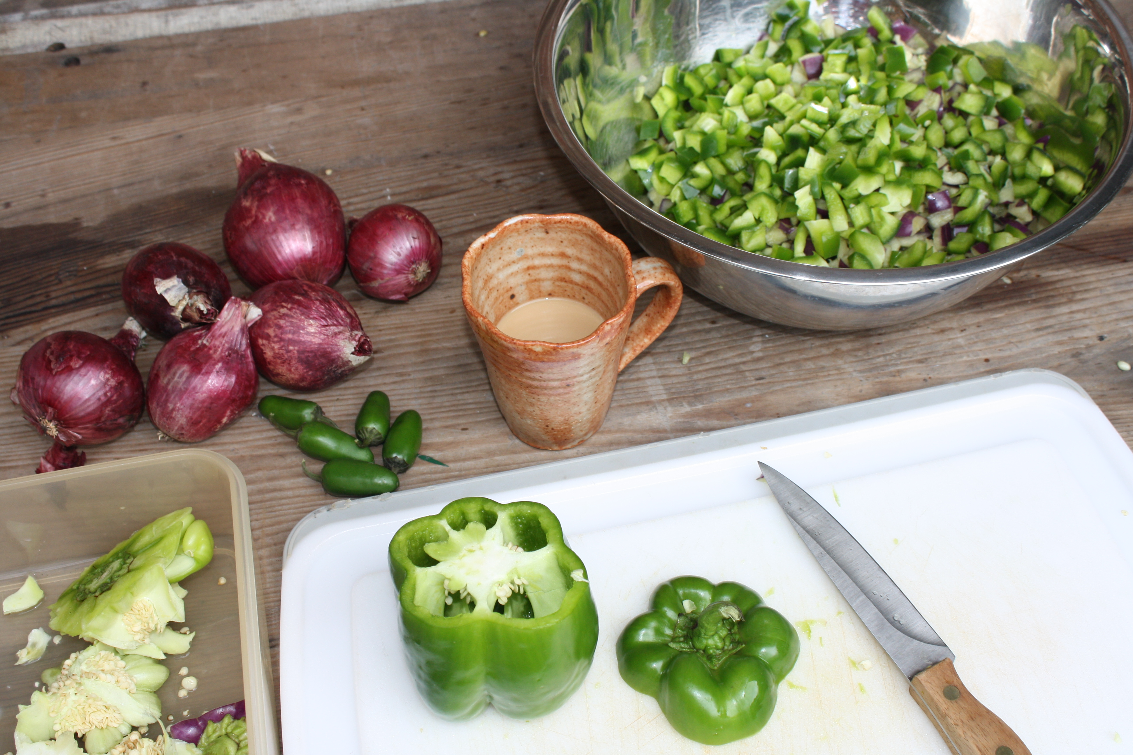 Yesterday I woke up early to begin this favorite task of mine.  I went out to the herb garden, enjoyed the cool damp air from the rain the night before, and spent some time in meditation just picking oregano and basil.  It was a great start to my morning.  Then with coffee at the ready, and ingredients laid out, I went to work.  And what lovely work it was, in the quite of the morning before anyone else awoke to begin their day.  Ah.
